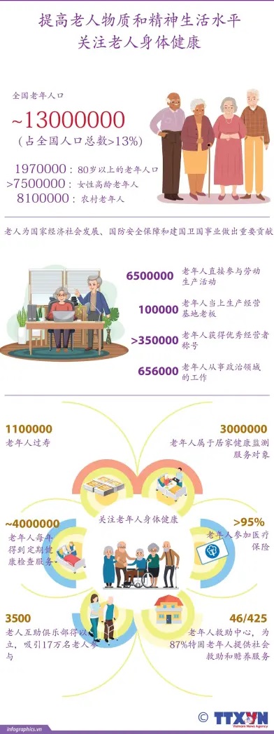 在各养老中心,老年人获健康和精神的照料。图自越通社