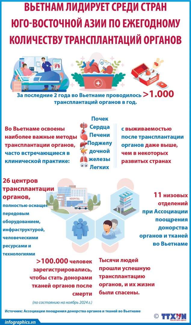 Спустя более 30 лет после первой трансплантации почки Вьетнам добился больших успехов в секторе трансплантации органов. Однако для того, чтобы спасти жизни большего числа пациентов, необходимы совместные усилия всего общества. Донорство органов – это не только гуманитарное действие, но и способ для каждого человека сохранить дух любви и сочувствия./.