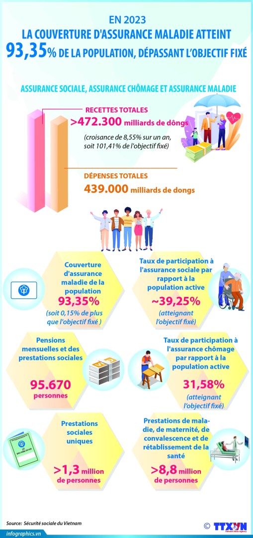 Le réseau de santé préventive est largement organisé à l’échelle nationale, étroitement lié aux soins de santé de base, le taux de couverture par l’assurance maladie est passé de plus de 81% en 2016 à 93,35% en 2023, et 85 % des personnes handicapées en situation difficile bénéficient d’une aide sociale, de soins et de réadaptation.