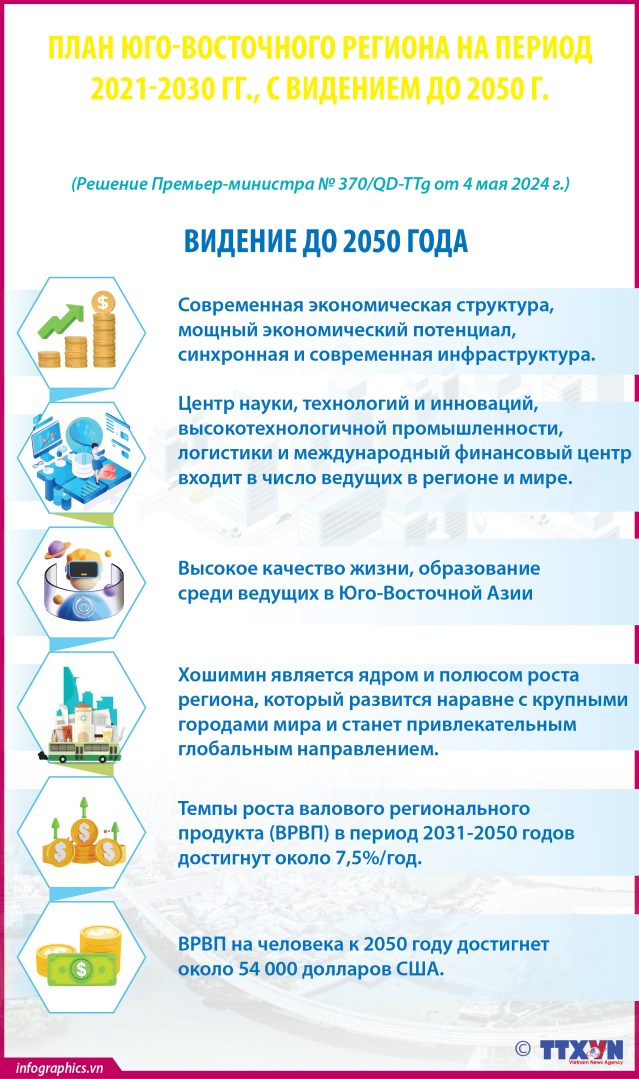 В резолюции 24-NQ/TW Политбюро от 7 октября 2022 года о социально-экономическом развитии и обеспечении обороны и безопасности в Юго-Восточном регионе к 2030 году, с видением до 2045 года также поставлена цель развития Юго-Восточного региона в устойчивом и современном направлении с акцентом на цифровую экономику, зеленую экономику и экономику замкнутого цикла. В то же время регион сосредоточит свое внимание на обновлении модели роста и реструктуризации экономики, обеспечении соблюдения стратегии устойчивого развития и адаптации к изменению климата.