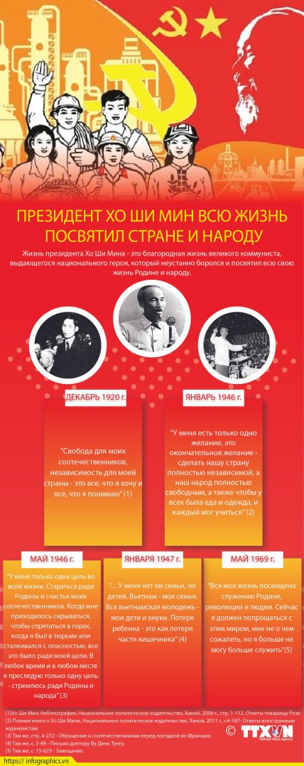 Жизнь Президента Хо Ши Мина – это великая героическая эпопея преданности национальной независимости, свободе и счастью народа. Он не только творил историю, но и оставил бесценное духовное наследие для вьетнамского народа. Идеи, нравственность и стиль Хо Ши Мина навсегда останутся светом, который будет вести на пути строительства и защиты Родины сегодня и в будущем./.