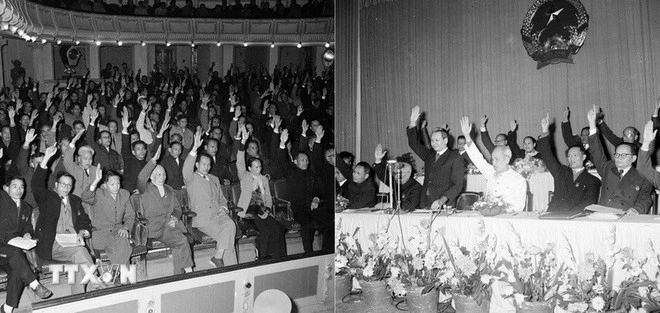 На 11-й сессии Национального собрания (НС) 1-го созыва президент Хо Ши Мин и депутаты НС единогласно одобрили новую Конституцию (1959 г.). (Фото: ВИA) Конституция 1980 г.