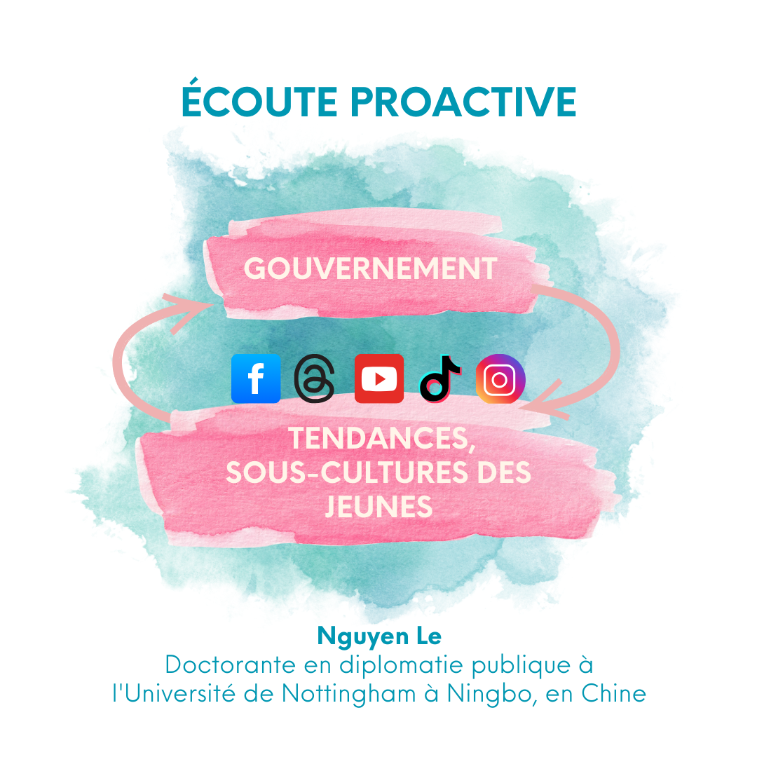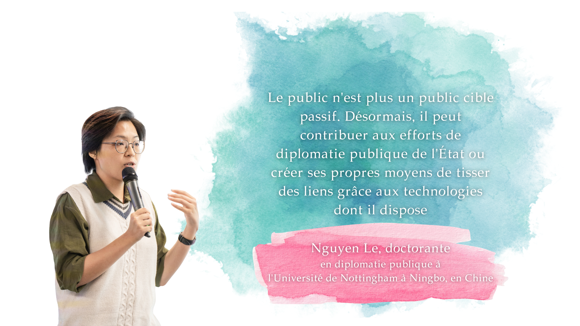 Nguyen Le, doctorante en diplomatie publique à l’Université de Nottingham à Ningbo, en Chine, a souligné : « Le public n’est plus un public cible passif. Désormais, il peut contribuer aux efforts de diplomatie publique de l’État ou créer ses propres moyens de tisser des liens grâce aux technologies dont il dispose »