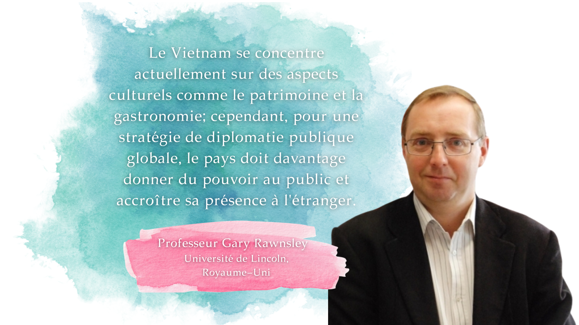 Interrogé par l’Agence vietnamienne d’information (VNA) sur les défis de la mise en œuvre de la stratégie 2021, le professeur Gary Rawnsley a fait les observations suivantes : le Vietnam se concentre actuellement sur des aspects culturels comme le patrimoine et la gastronomie; cependant, pour une stratégie de diplomatie publique globale, le pays doit davantage donner du pouvoir au public et accroître sa présence à l’étranger.