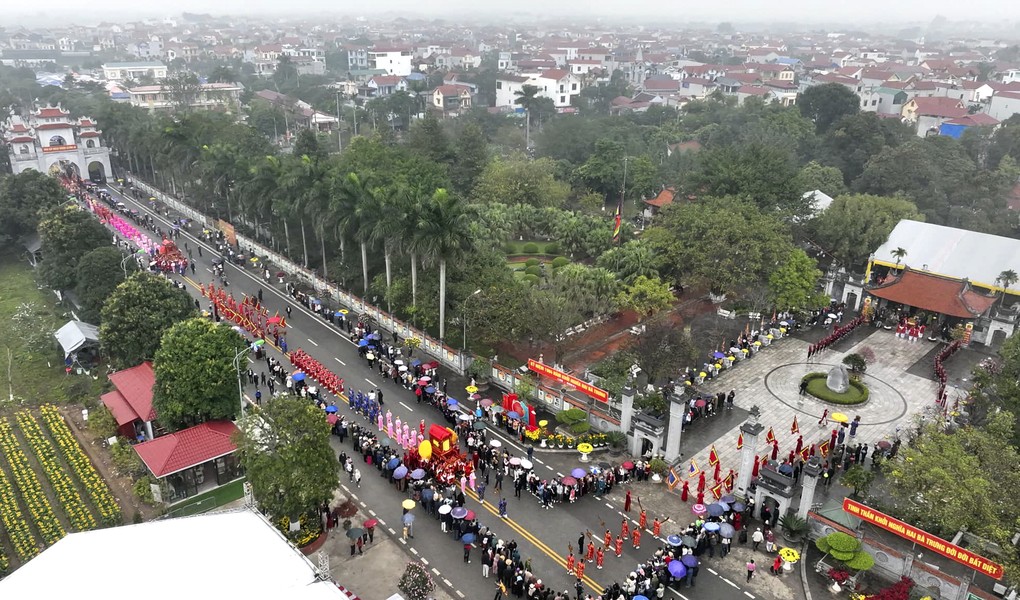The unique palanquin procession at the 2024 Hai Ba Trung Temple Festival. (Photo: An Ninh Thu Do newspaper)