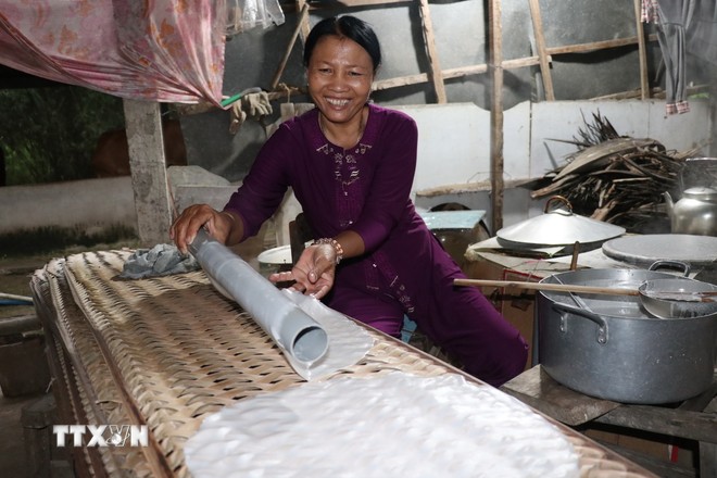 Elaboran papel de arroz en la aldea de oficio de My Long. (Fuente: VNA)
